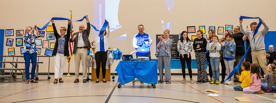 Students, staff, school board members, and parents gathered to celebrate the Harrison Elementary School additions and renovations project dedication on May 5. The project includes a two-story addition to the existing K-4 facility as well as site improvements, most notably the separation of buses and parent vehicles. The main office was relocated to provide a much-needed controlled entry along with administrative support spaces creating safety and efficiency for students and staff. The project also includes multiple general classroom spaces, a two-station gymnasium, media center, and music room. The cafeteria and kitchen were pulled out of the lower level to improve food service safety and efficiency. The project also includes an elevator and ramp to provide accessibility throughout the facility. Widseth provided pre-referendum services, district-wide design standards, land surveying, civil engineering, architecture through the design development phase, interior design, and FF&E (furniture, fixtures, & equipment) planning.